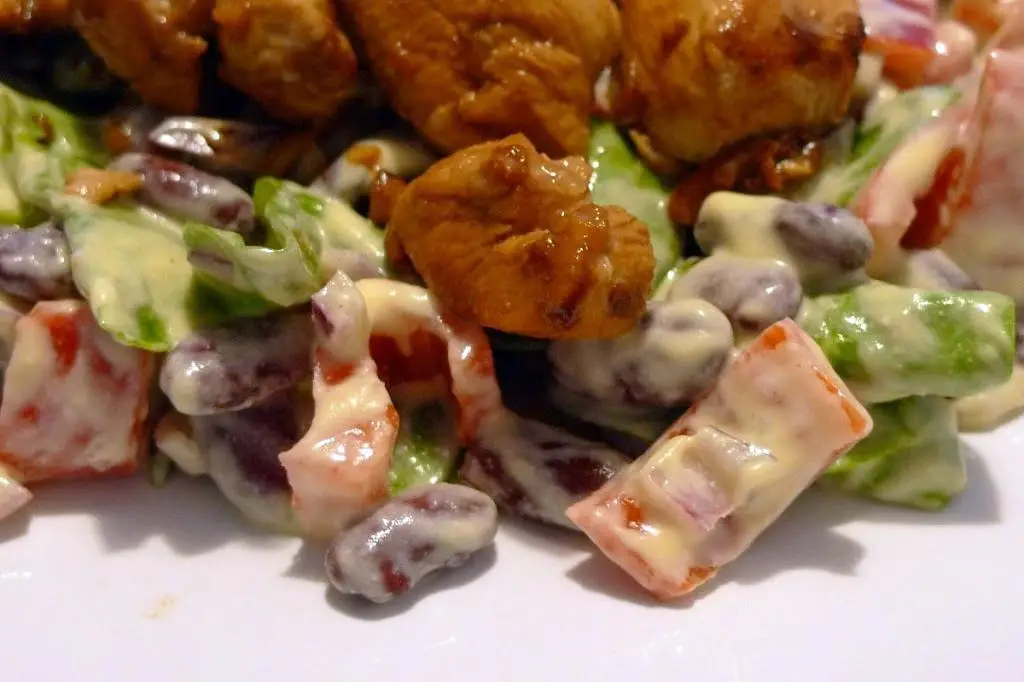 Kolejna sałata z kurczakiem – tym razem z wyrazistym sosem na bazie jogurtu. Dużo białka, dużo warzyw, mało pracy w kuchni. Same plusy!