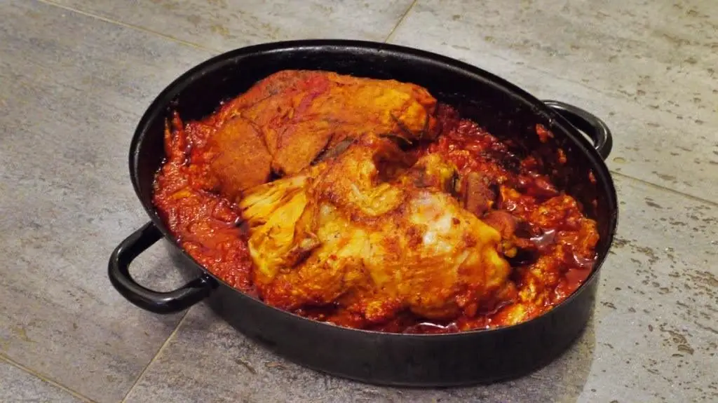 Pieczona wieprzowina w sosie – pikantne mięso dla głodnych.