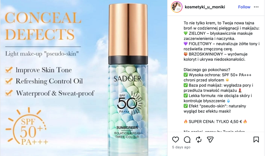 Inne produkty tej samej marki można kupić na Allegro. Nie chce mi się szukać, jakie mają składy – myślę, że wystarczająco udowodniłam, co jest zagrożeniem w kosmetykach. Nie jest to nic, co możesz kupić w drogerii czy perfumerii. Natomiast robienie zakupów z jakiegoś przypadkowego sklepu czy od “pani z IG” to moim zdaniem duże ryzyko.