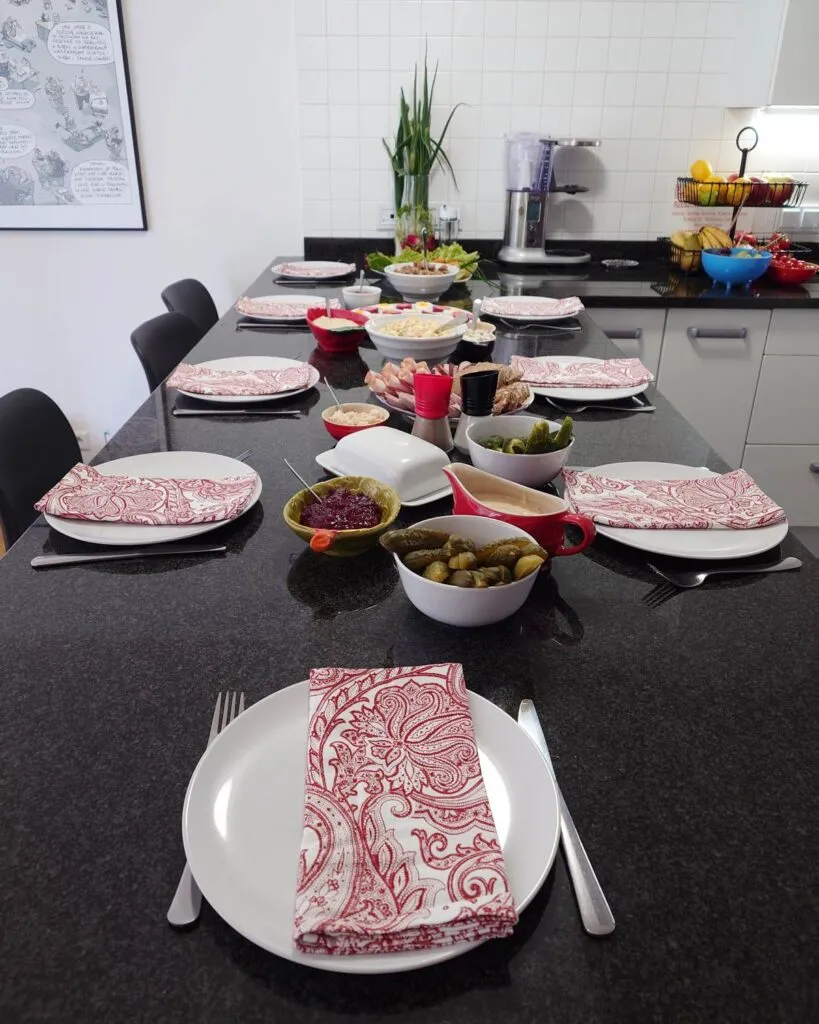 Wiedziałam, że mama Marka w zasadzie nie je mięsa, a moja przyjaciółka nie jada wieprzowiny. Musiałam więc znaleźć balans między tradycyjnymi wędlinami a lekkimi opcjami wege. Chciałam też mieć dania na ciepło, które „robią się same”.