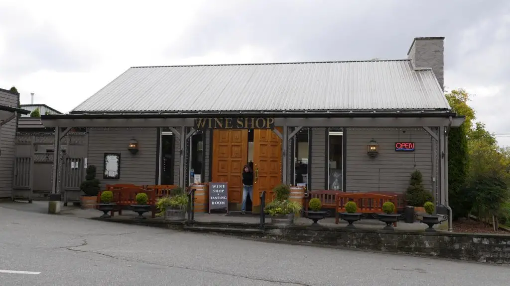 Posileni ruszyliśmy do winnicy – wybraliśmy Chamberton. Piliśmy tu kilka lokalnych wariantów pinot gris i zachwyciło nas to, że mają ziołowy, cierpki posmak. Tamte były z okolic Kelowny, więc nie mieliśmy szans ich kupić tutaj, ale czemu nie spróbować czegoś z okolic Vancouver? Spróbowałam go dziś do kolacji – co ciekawe, chociaż to białe wino, ma różowawy kolor dzięki specyficznej obróbce owoców. Nie ma dokładnie tego samego ziołowego posmaku, co inne pinot gris z Kanady, ale jest ciekawie cierpkie.