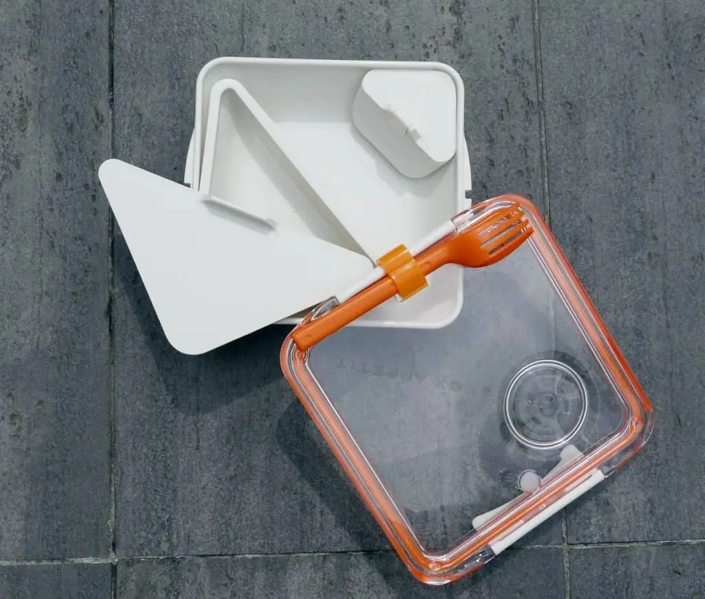 Plusem jest też niewielki rozmiar. Porcja, która się tu mieści, to porcja dla jednej osoby, bez niedojadania, ale też bez poluzowywania paska spodni. Widelec jest wygodny, pełnowymiarowy. Nie ma łyżki ani noża, więc odpadają zupy i wszelkie dania, które trzeba kroić.