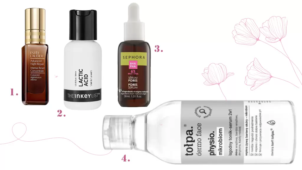 Warto też zwrócić uwagę na kwasy PHA – są najbardziej delikatne dla skóry i można znaleźć wiele kosmetyków w formie serum lub toniku, które je zawierają.