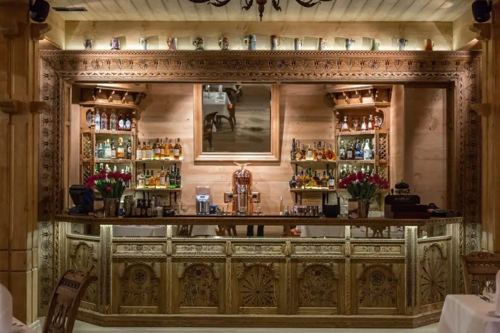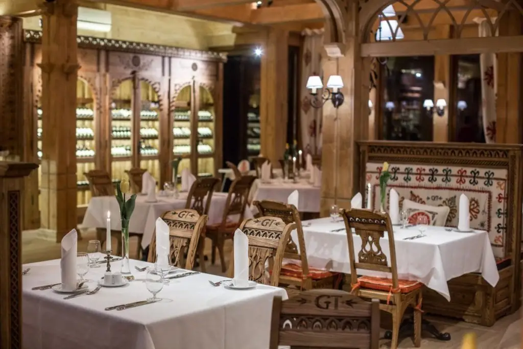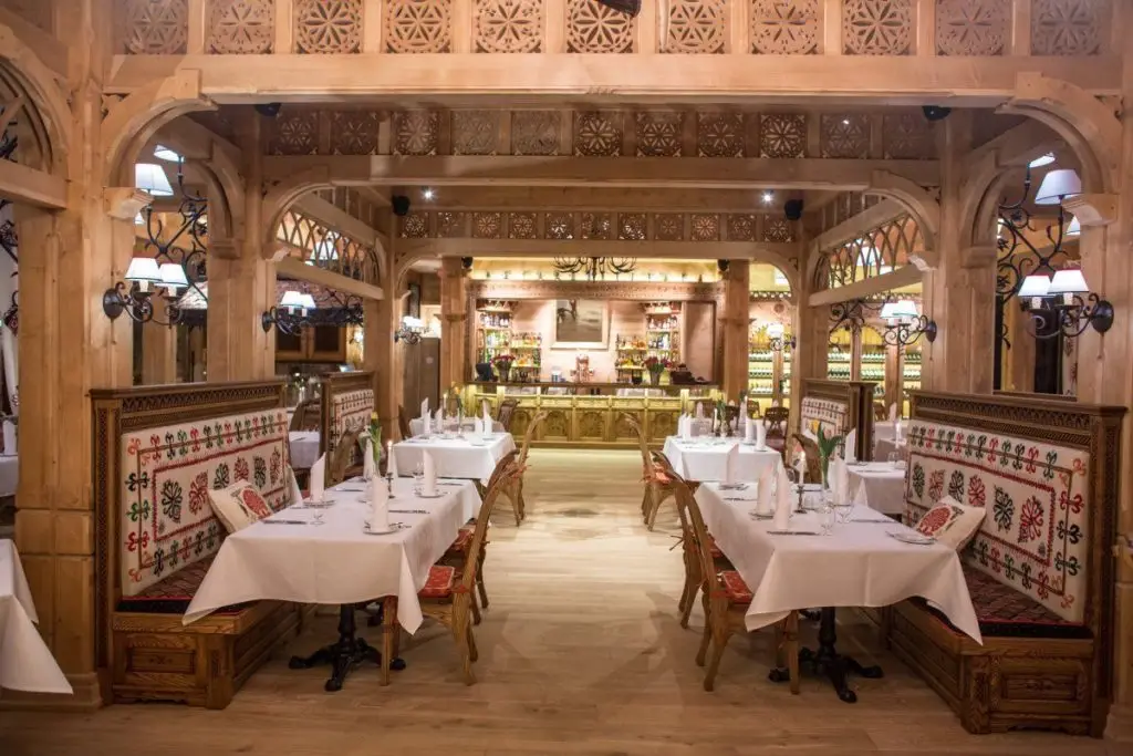 Chociaż na pozór to kolejna restauracja w stylu ludowym, to jednak trzeba zauważyć, że Góralska Tradycja jest o wiele bardziej dopracowana wizualnie. Piękne, wysokie, jasne pomieszczenia, sztuka ludowa na ścianach, białe, haftowane w typowo góralskie wzory zasłony, rzeźbione krzesła i inne meble, ręcznie kute detale – dzięki temu wnętrze robi o wiele większe wrażenie na gościach. Tu nie ma miejsca na masówkę, bo wszystko jest przemyślane w najmniejszym detalu. Jeśli chce się dobrze zjeść w Zakopanem i w dodatku w pięknych wnętrzach – to jest to miejsce.