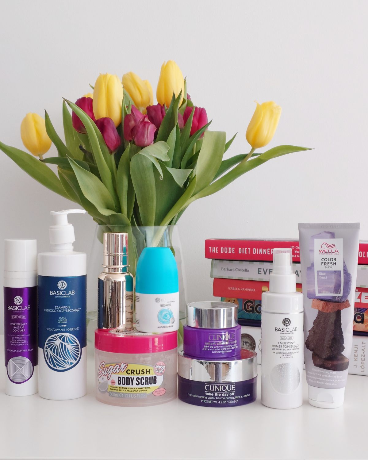 Pielęgnacja ciała denko: BasicLab balsam z retinalem, Soap & Glory Sugar Crush Body Scrub i antyperspirant BasicLab.