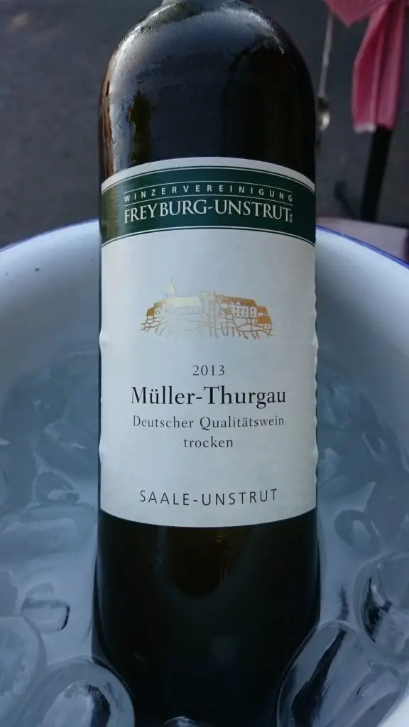 Po zwiedzaniu, wróciliśmy do pensjonatu. Planowaliśmy zjeść coś gdzie indziej, ale byliśmy zmęczeni po tak długiej wycieczce (12 km w tę i z powrotem, nie licząc samego zwiedzania okolic), więc po raz kolejny udaliśmy się do Oma’s Kueche. Tym razem było białe wino, niemieckie – bardzo dobre, dla mnie sałata z krewetkami, a dla Marka – śledzie i pieczone ziemniaki. Smaczne, niewyszukane jedzenie – takie, jak chciałam. Śledzie nawet lepsze niż sałata, chociaż krewetki wielkie i b. smaczne.
